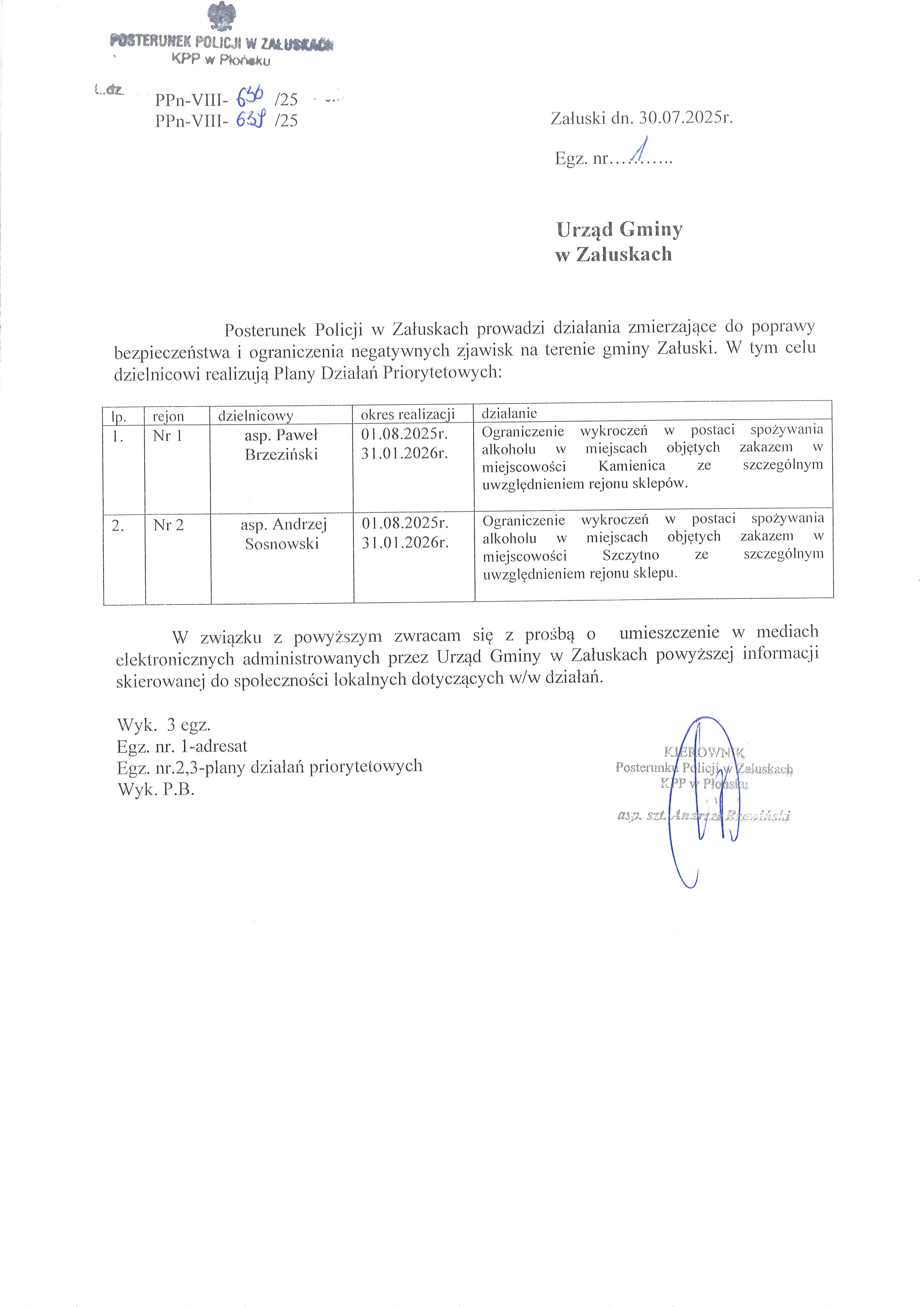 Plany Działań Priorytetowych Posterunku Policji w Załuskach