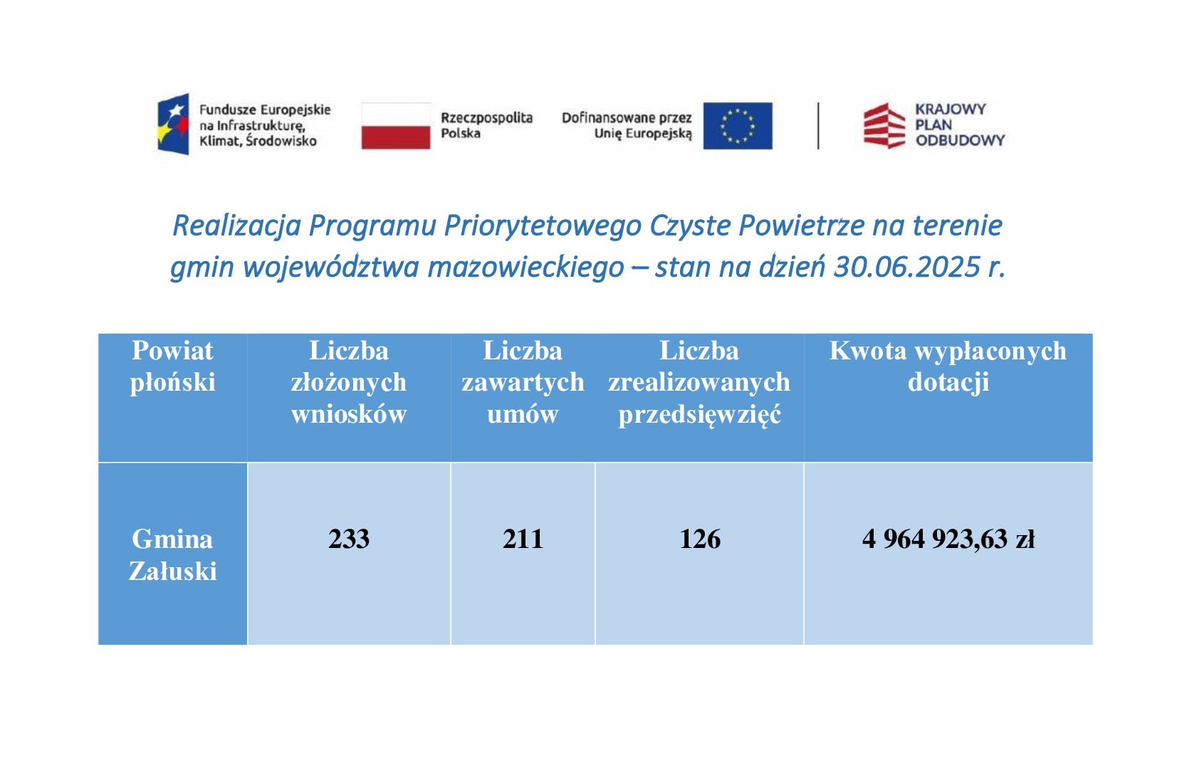 Realizacja Programu Priorytetowego Czyste Powietrze na terenie gmin województwa mazowieckiego – stan na dzień 30.06.2025 r.