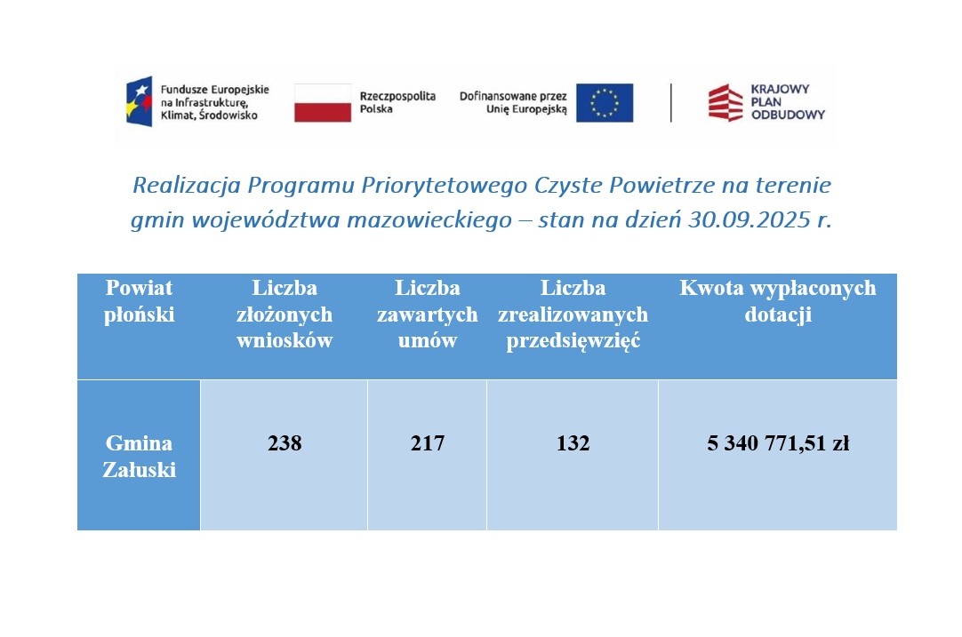 Realizacja Programu Priorytetowego Czyste Powietrze na terenie gmin województwa mazowieckiego – stan na dzień 30.09.2025 r.